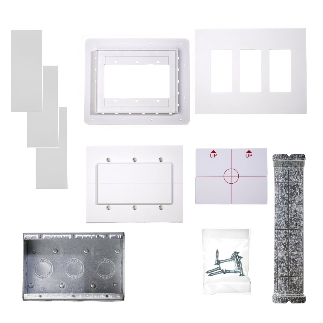 Elevate your interior design with the 3-Gang Flush Mount Switch Kit for 1/2" Drywall Applications – a stylish and practical solution that combines form and function for the ultimate in modern wall design.